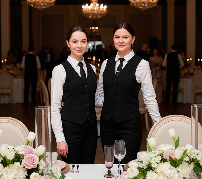 We ensure every staff member is experienced, reliable, and trained to deliver exceptional service. Our team arrives on time, professionally presented, and prepared to represent your event with excellence.